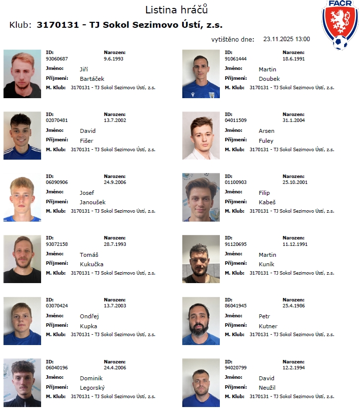HRÁČSKÁ SOUPISKA: